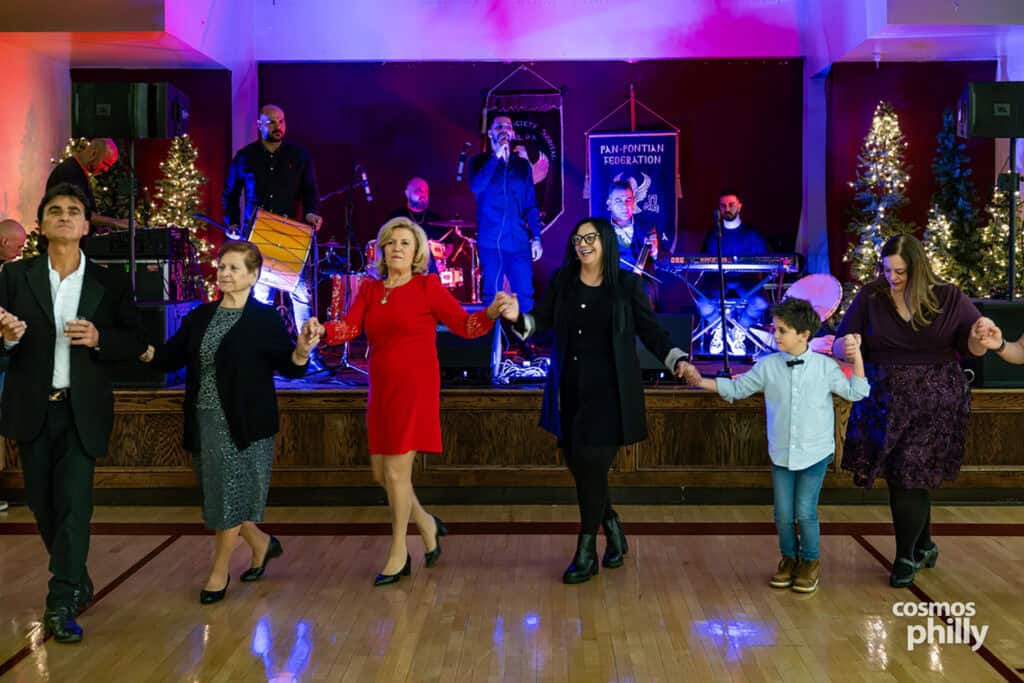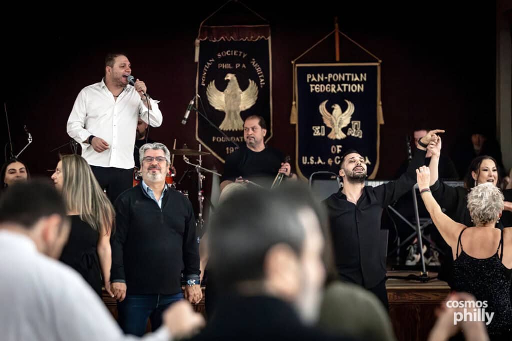 This year’s music program featured a full lineup of musicians who traveled from Greece for the event. Giorgos Ioannidis and Babis Kemanetzidis led the night, joined by Kyriakos Papadopoulos on klarino, Giannis Froutis on keyboards, Giorgos Petridis on drums, Christos Tiktapanidis on lyra, and Haralambos Almazidis on daouli. For several of them, including Ioannidis, it was their first time performing in Philadelphia. “We’re grateful to be here and happy to share Pontian music with the community,” he said.